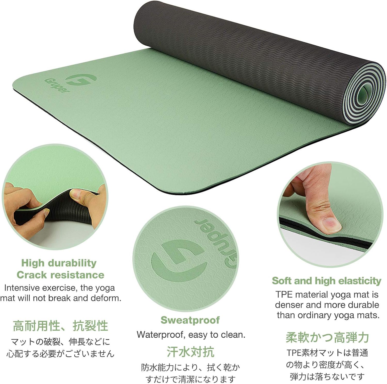 NEW ECO FRIENDLY MATERIAL: The upgraded Gruper Yoga mat is made with premium friendly material. It costs more to make, but it is safer and more soft than traditional non-green PVC and EVA yoga mats.The exercise mats are suitable for many forms of Yoga, Pilates and fitness.